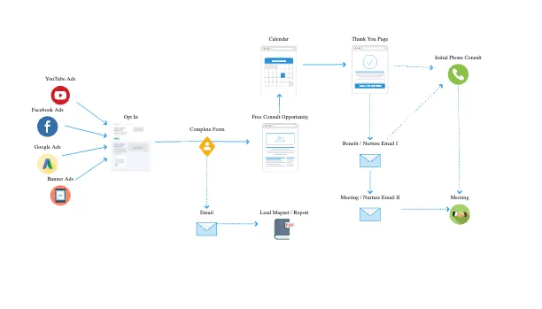 This is a standard lead magnet funnel, designed to collect email addresses, feed your Facebook remarketing strategy and start an email nurture process to sell additional services later. This is tried and true and there are few successful businesses not using this strategy. While there are more complex lead generation strategies out there (and here), sometimes the classic winner is the best. It's a golden oldie that works!